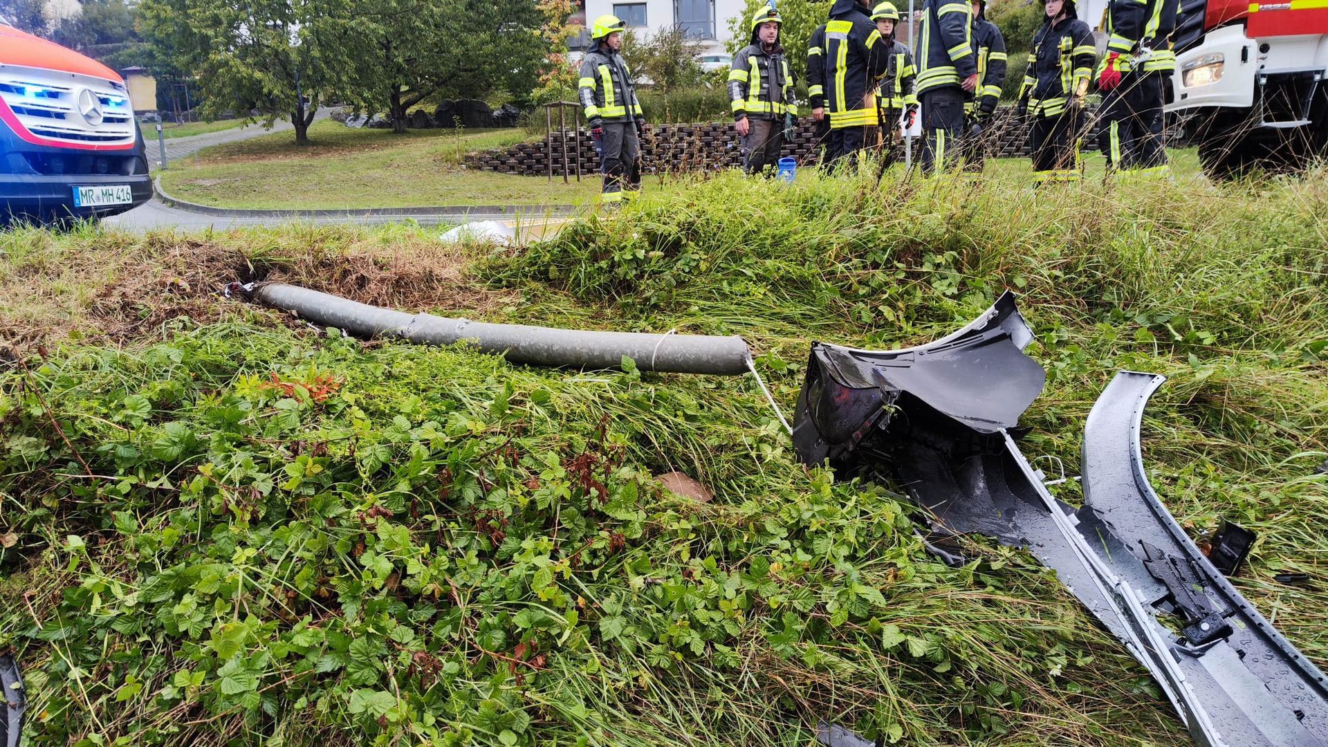 Die umgefahrene Straßenlaterne wurde von einer Elektrofachkraft der Feuerwehr abgeklemmt.