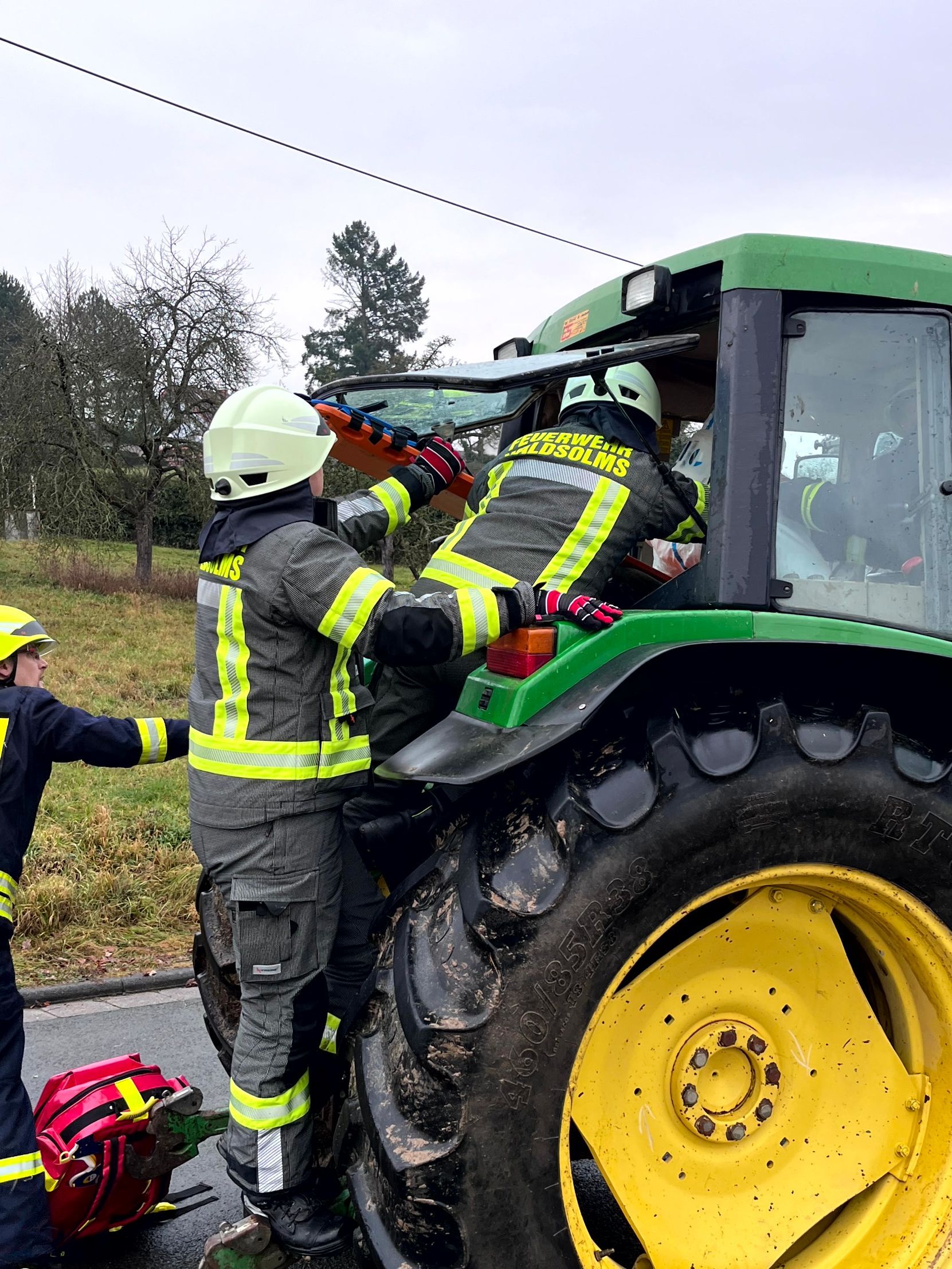 Der Fahrer des Traktor wurde schonend aus seinem Fahrzeug befreit. Anschließend stand der schwierigste Teil an, die eingeklemmten Person aus dem PKW zu retten.