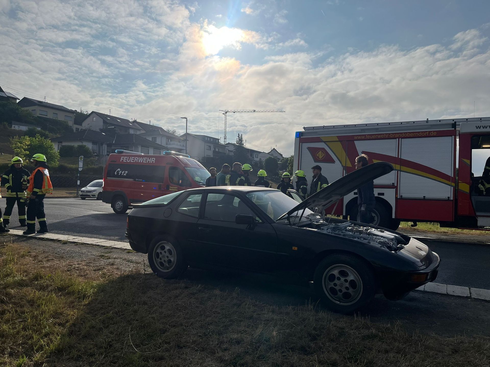 An der Einsatzstelle im Ziegelhüttenweg stand ein klassischer Porsche, der im Motorraum brannte. Der Besitzer hatte bereits mit einem Feuerlöscher gute Vorarbeit geleistet. Wir haben mit einem weiteren Pulverlöscher den Brand endgültig gelöscht und anschließend mit der Wärmebildkamera kontrolliert.