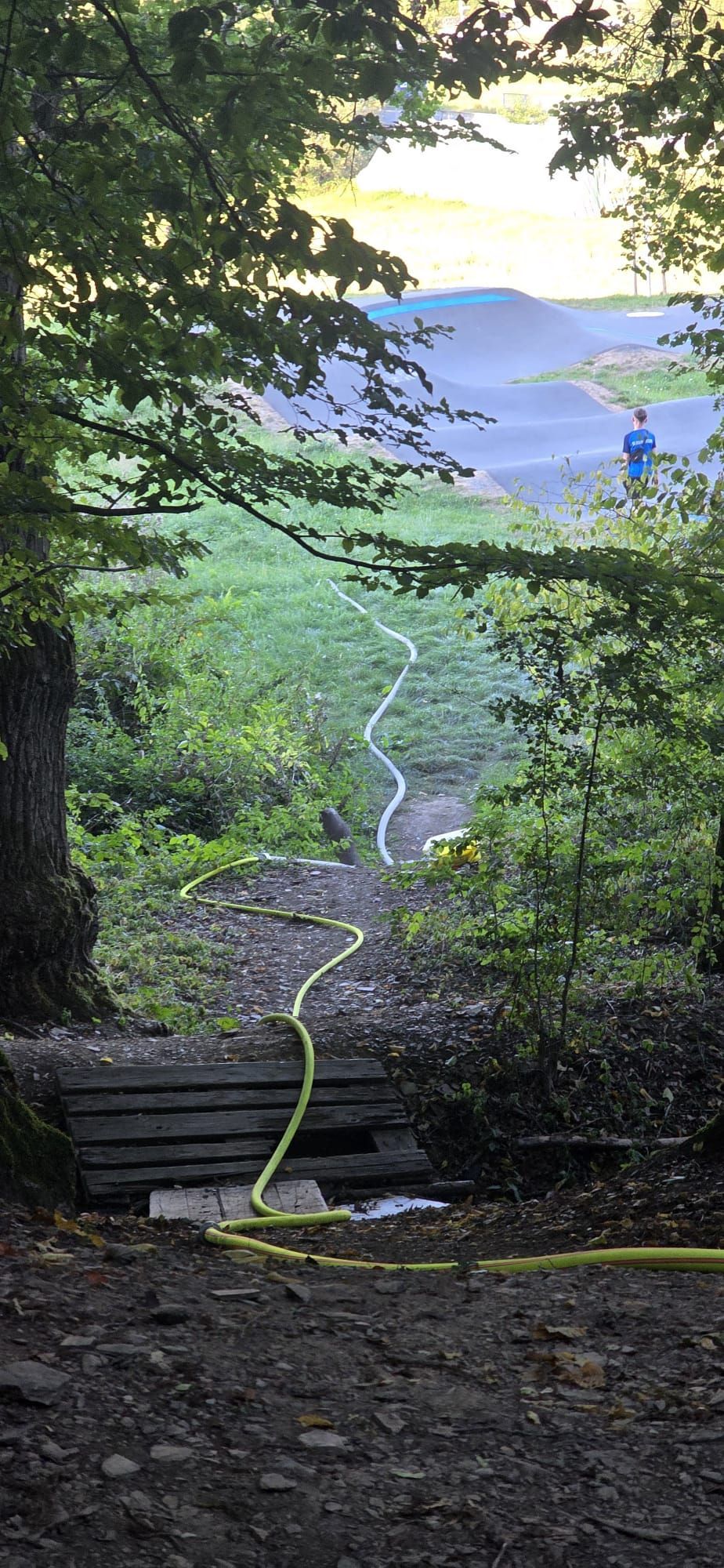 Auf dem Rückweg vom TÜV wurden zwei Kameraden mit dem LF10 telefonisch über ein Feuer im Bereich des Bikeparks informiert.