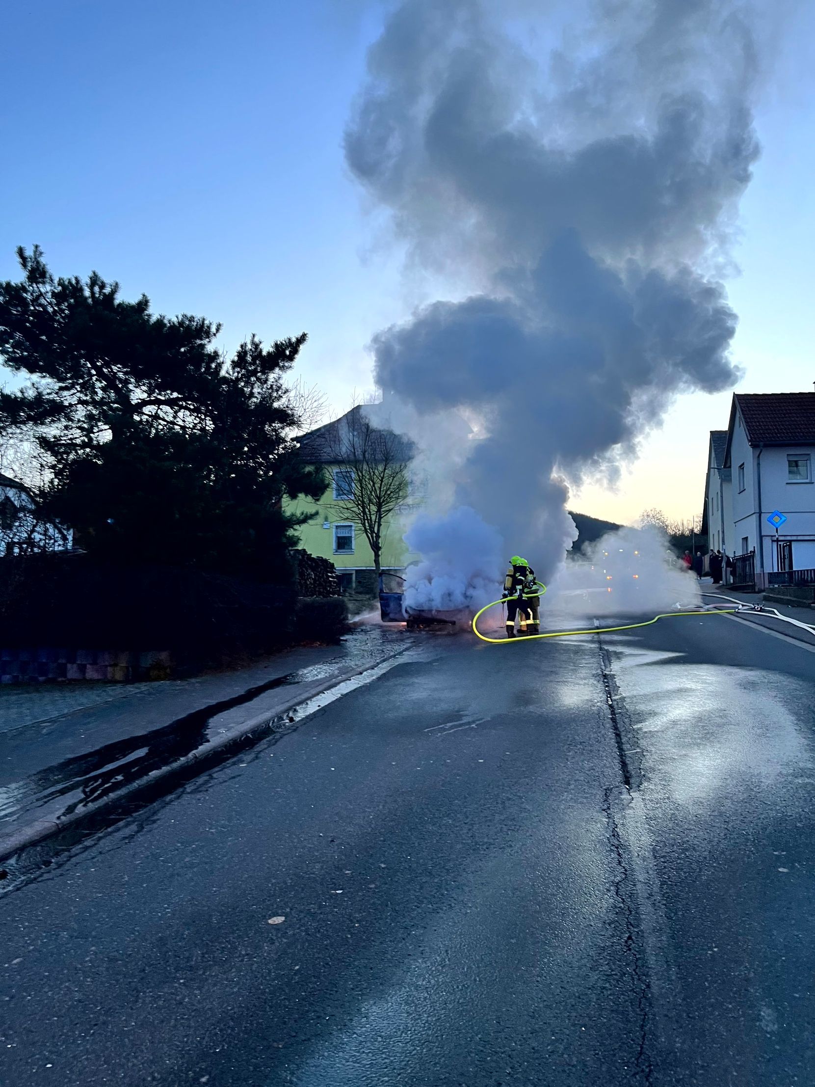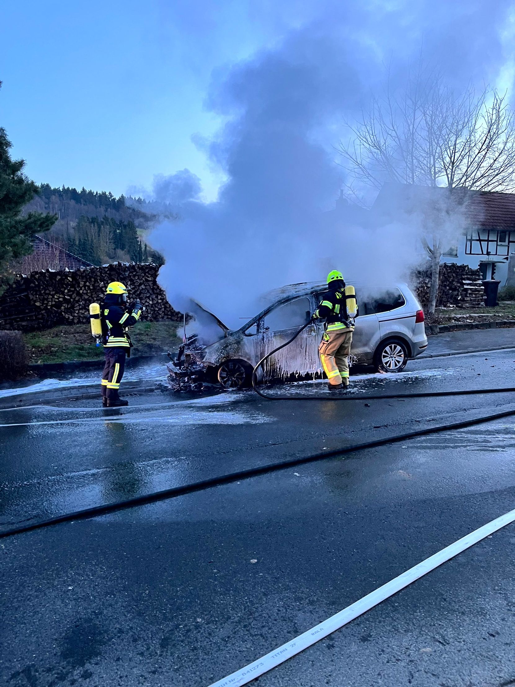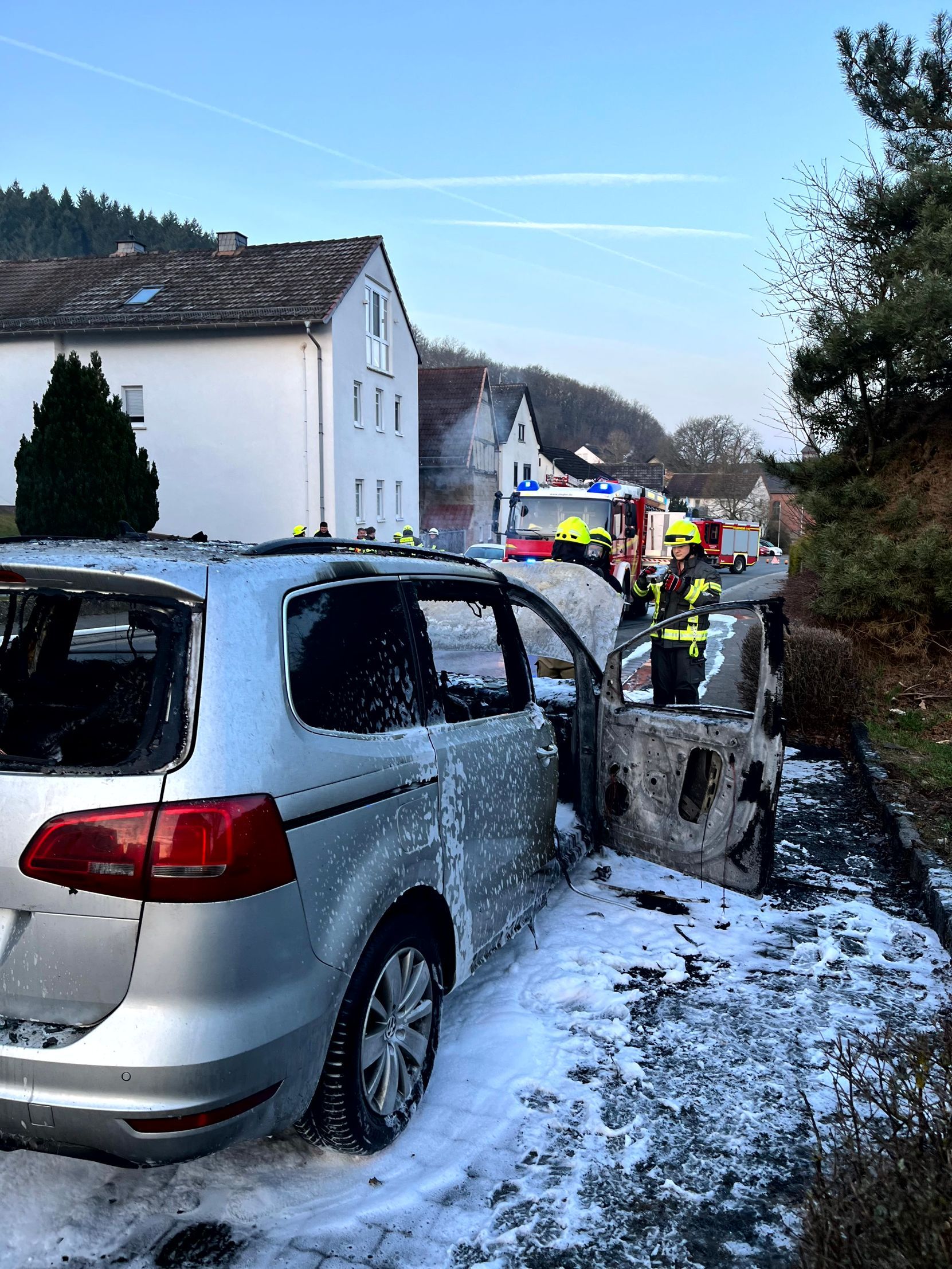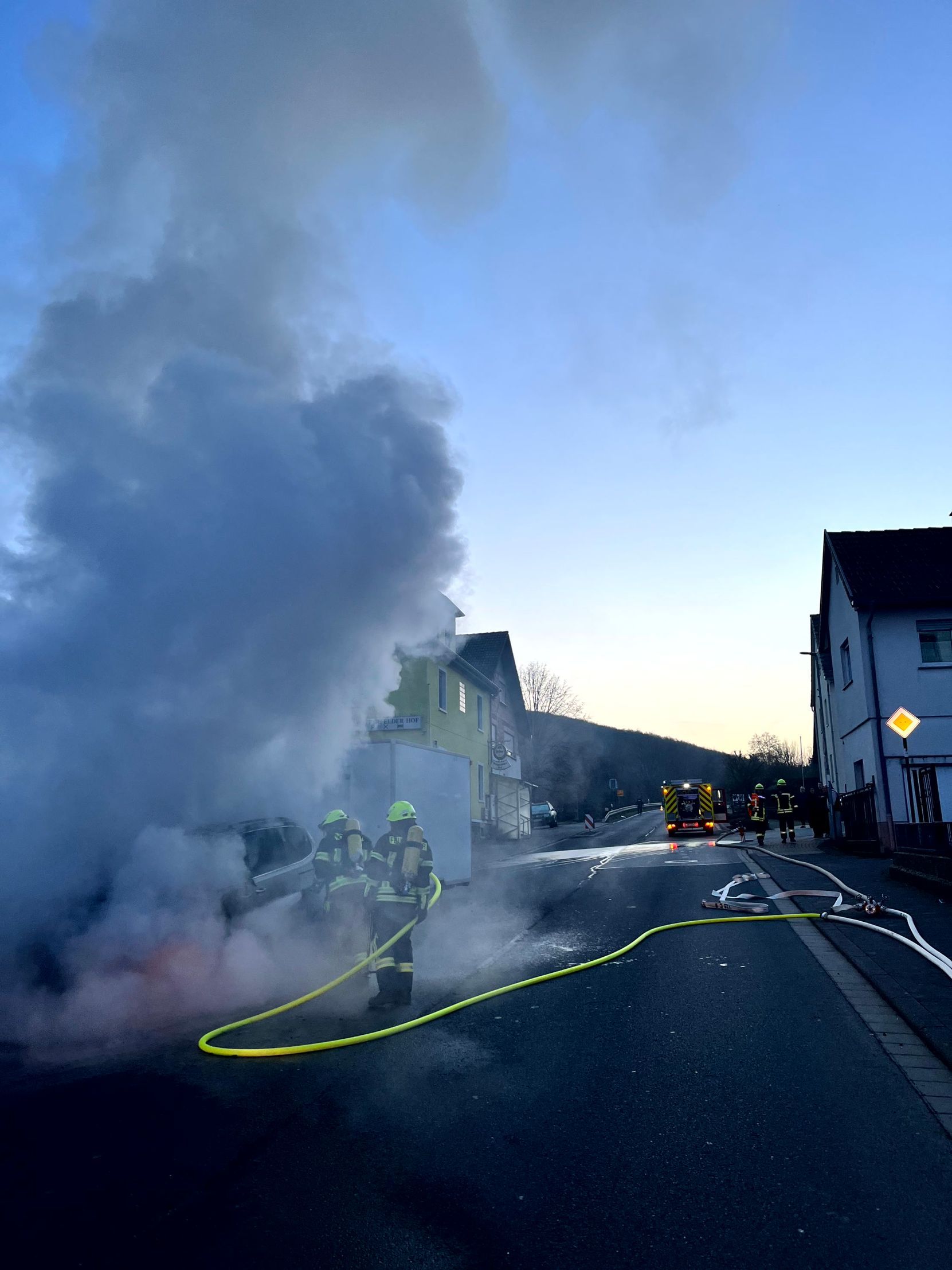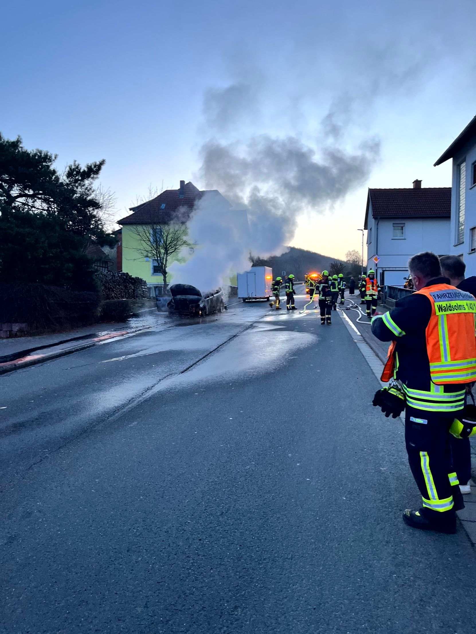 Am heutigen Sonntag wurden wir um 6.30 Uhr zusammen mit den Feuerwehren Weiperfelden und Bodenrod zu einem brennenden Pkw alarmiert.